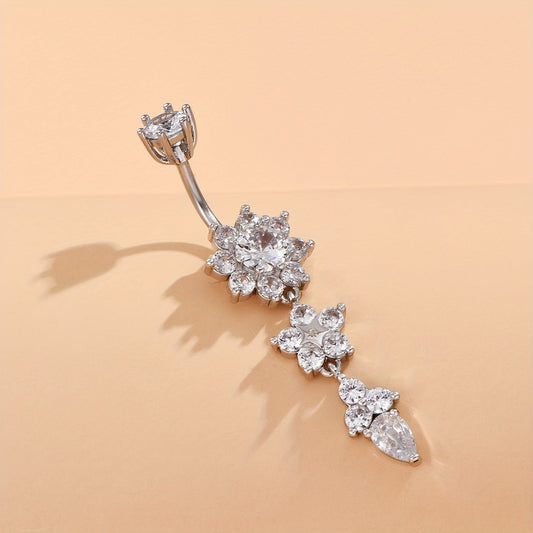 Elegant Rhinestone Belly Button Ring with Waist Chain