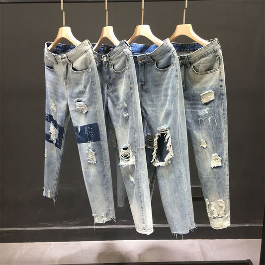 Holes Jeans Men And Women Summer 2022 High Waist Thin Color Loose Straight Denim Ankle-length Harem Pants Men And Women Jeans