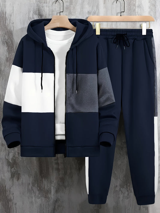 Mens Color Block Hoodie Pants Set Plus Size