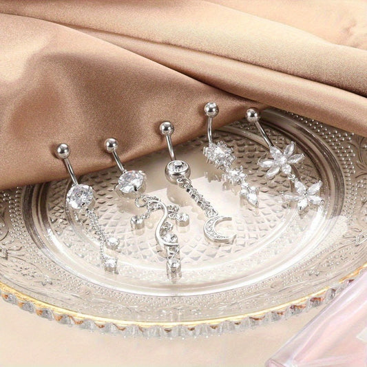 Elegant Zirconia Curved Navel Barbell in Surgical Steel